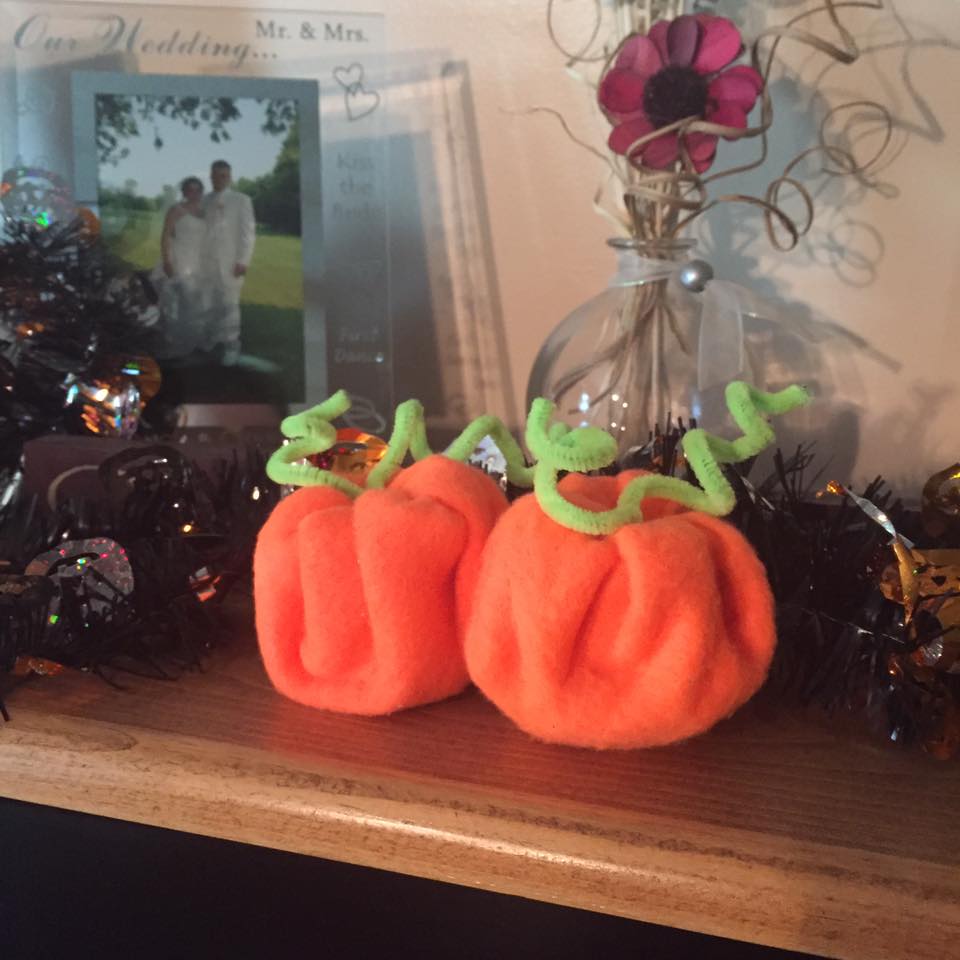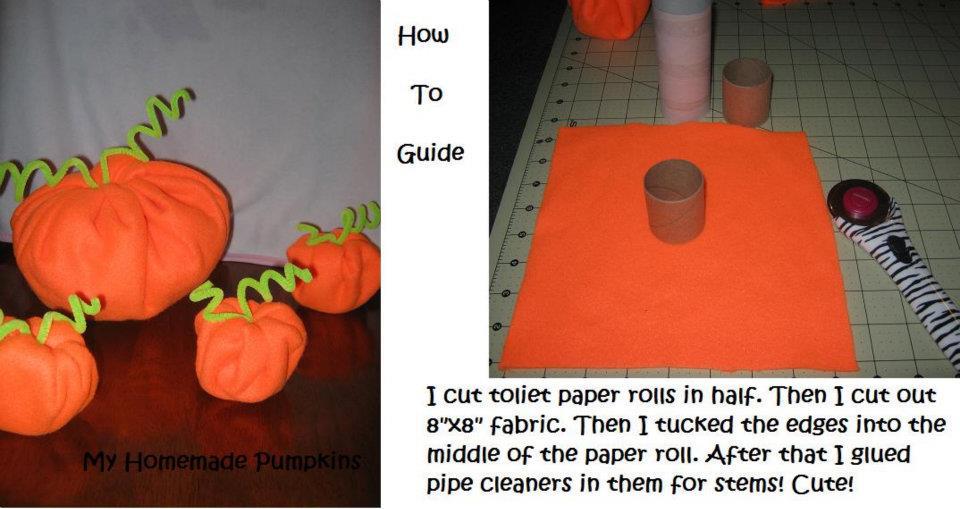 These are really simple to make! That’s my kind of craft ???? All you have to do is lay out some material and place the toilet paper roll in the middle. you are going to want to fold the material up and around it to see how much you will need. I used 8″ x 8″ for mine. It will depend on how large you are making your pumpkins.