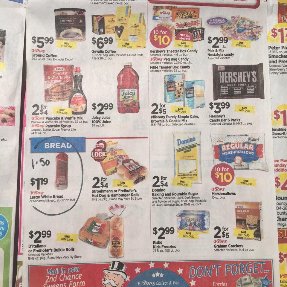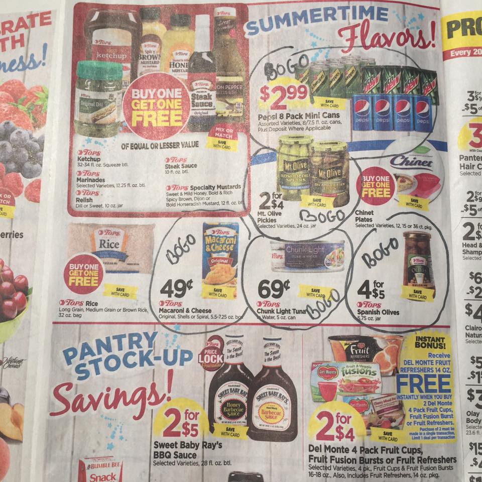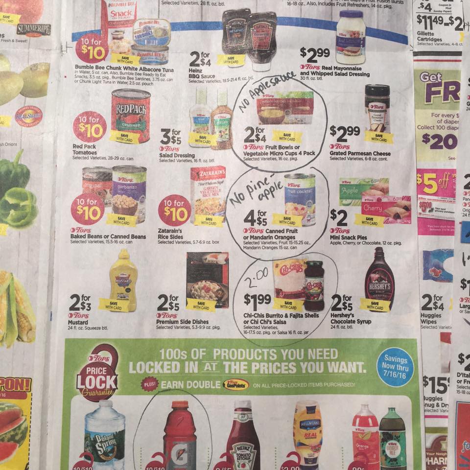 As I mentioned, the Geneva, NY location for Tops Markets has a different ad then the rest of the stores. You can read more about that here. Below I am sharing the ad and I circled all of the differences along with the price or offer it is everywhere else. I hope you can see it and that’s helpful.