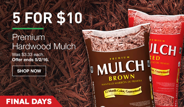Tomorrow is the last day to grab Premium Hardwood Mulch for only $2.00 a bag at Lowe’s. You can also order online and pick up in store for easy connivance!